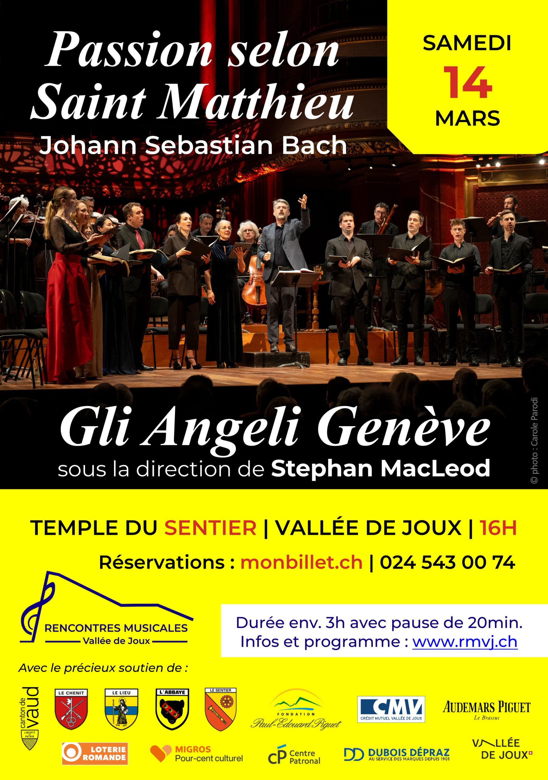 Les Rencontres Musicales de la Vallée de Joux ont le plaisir d’accueillir une nouvelle fois l’ensemble Gli Angeli Genève pour interpréter, dans le cadre d’un concert exceptionnel, la Passion selon Saint Matthieu de Bach, samedi 14 mars au Temple du Sentier.