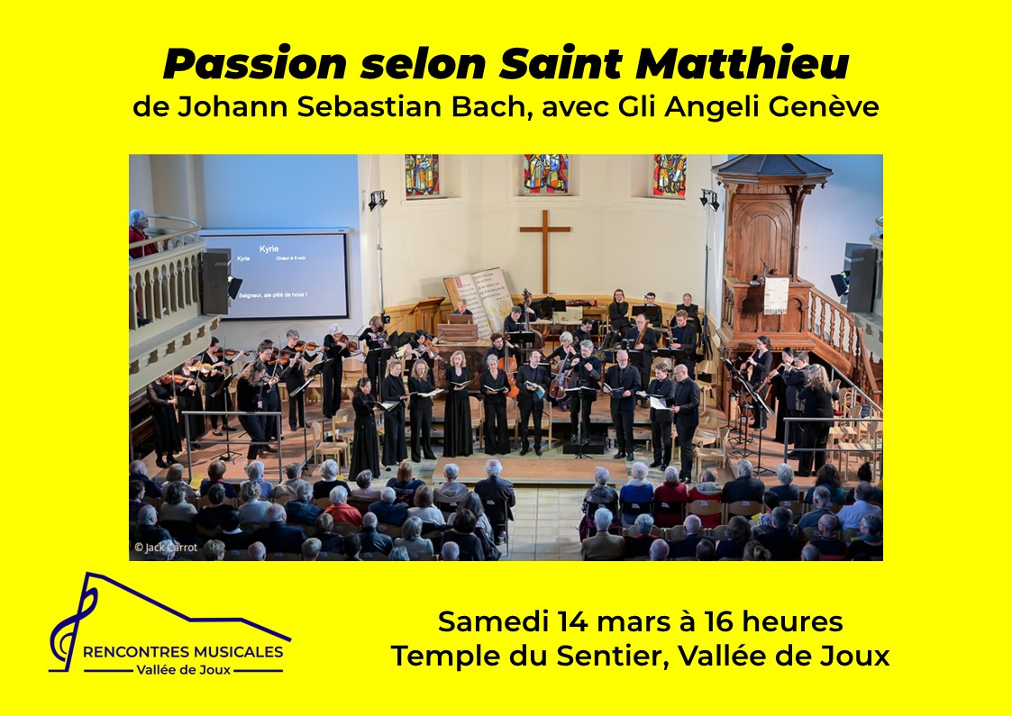 Avec : Werner Güra (Évangéliste), Rachel Redmond, Aleksandra Lewandowska (sopranos), Alex Potter, William Shelton (altos), Thomas Hobbs, Rodrigo Carreto (ténors), Felix Gygli, Matthew Brook (basses), Stephan MacLeod (basse et direction), Gli Angeli Genève, Maîtrise du Conservatoire populaire de Genève
