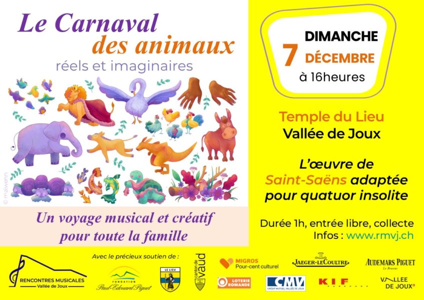 Plongez dans un univers magique où la musique prend vie et où les animaux, réels ou imaginaires, s’animent au rythme des instruments. Le Carnaval des animaux réels et imaginaires est un concert interactif. Le public est invité à découvrir l’œuvre emblématique de Camille Saint-Saëns.